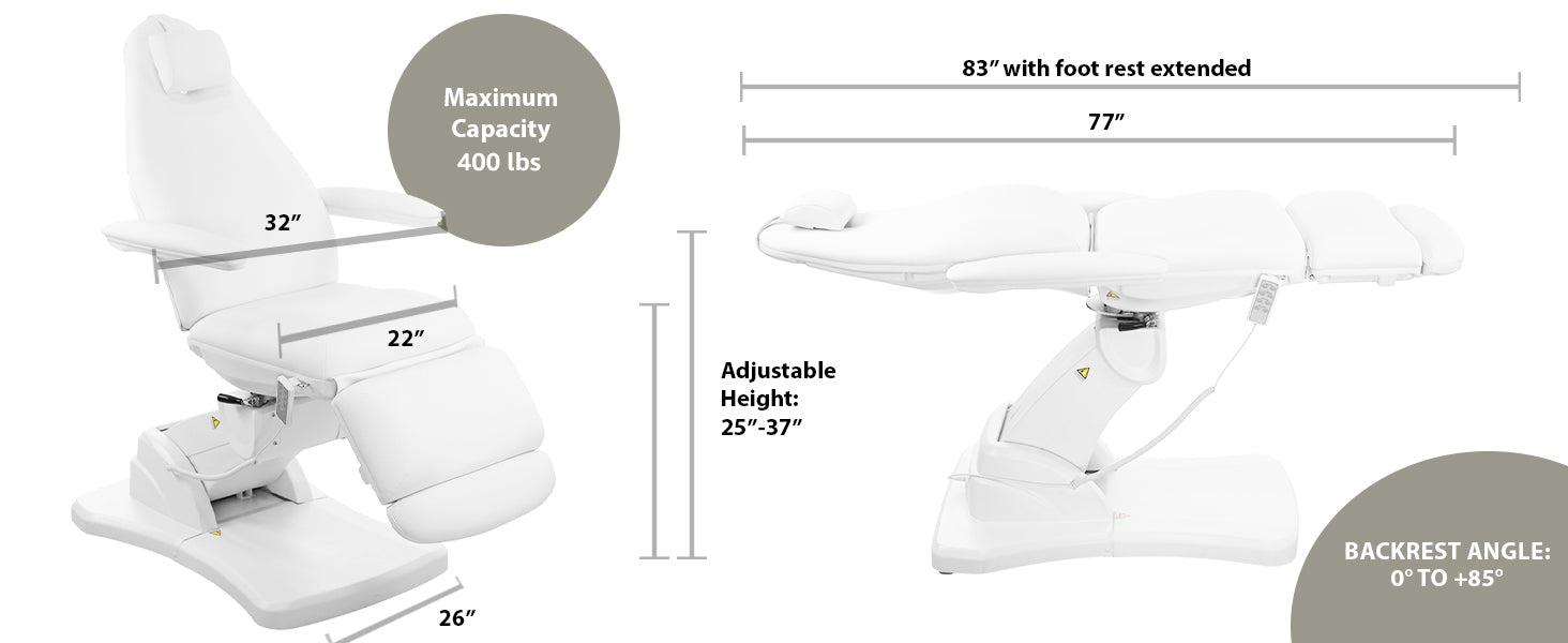 We are excited to introduce the Bents Electric Treatment Table. With cutting-edge technology, this table offers precise adjustments, silent operation, and a modern design. This top-of-the-line treatment table is perfect for both day spas and medical spas. The electric controls for height, backrest, leg rest, and seat tilt provide convenience, while the manual seat rotation adds versatility. Be sure to view the video demonstration to see all the amazing features in action.