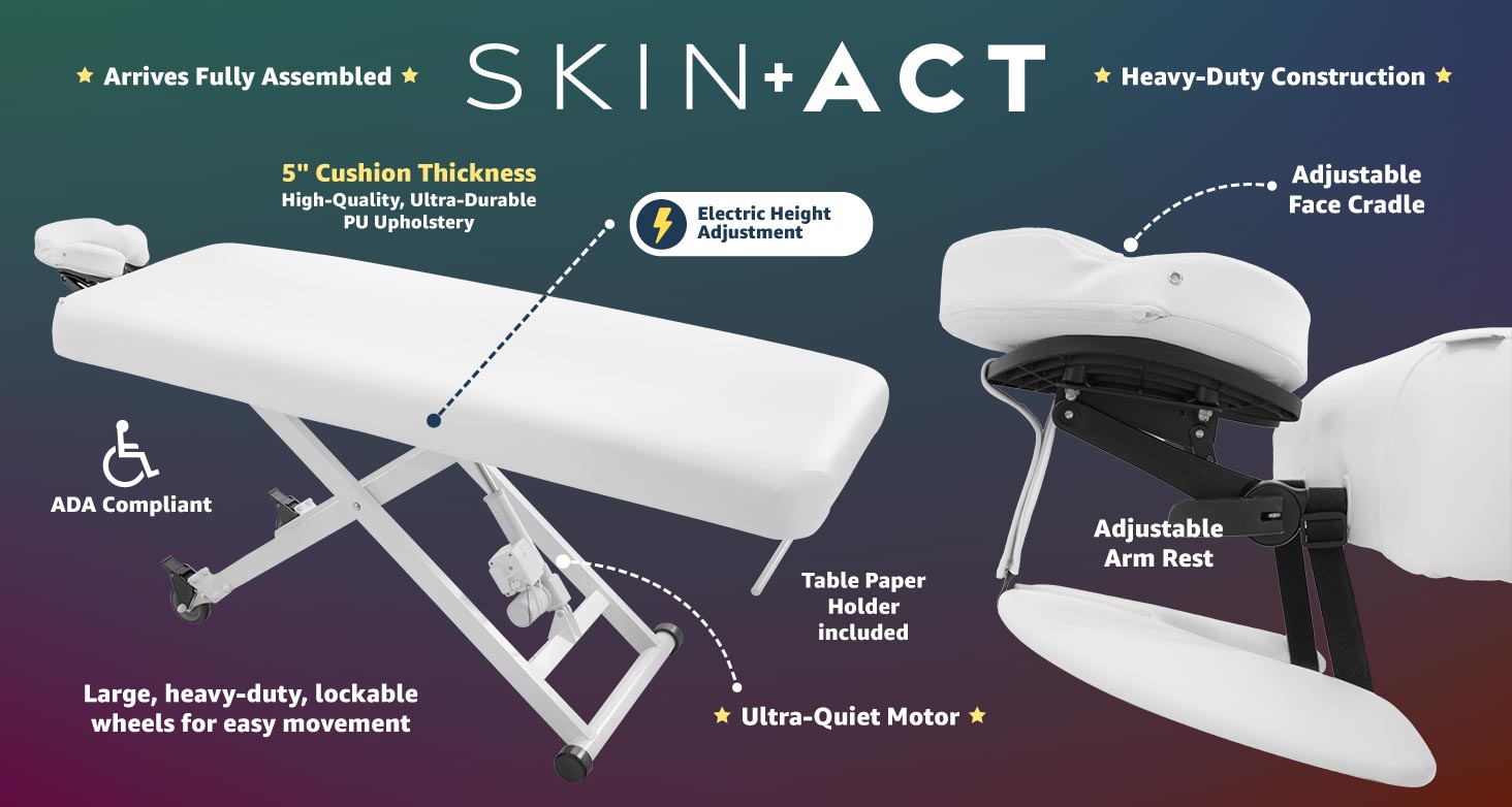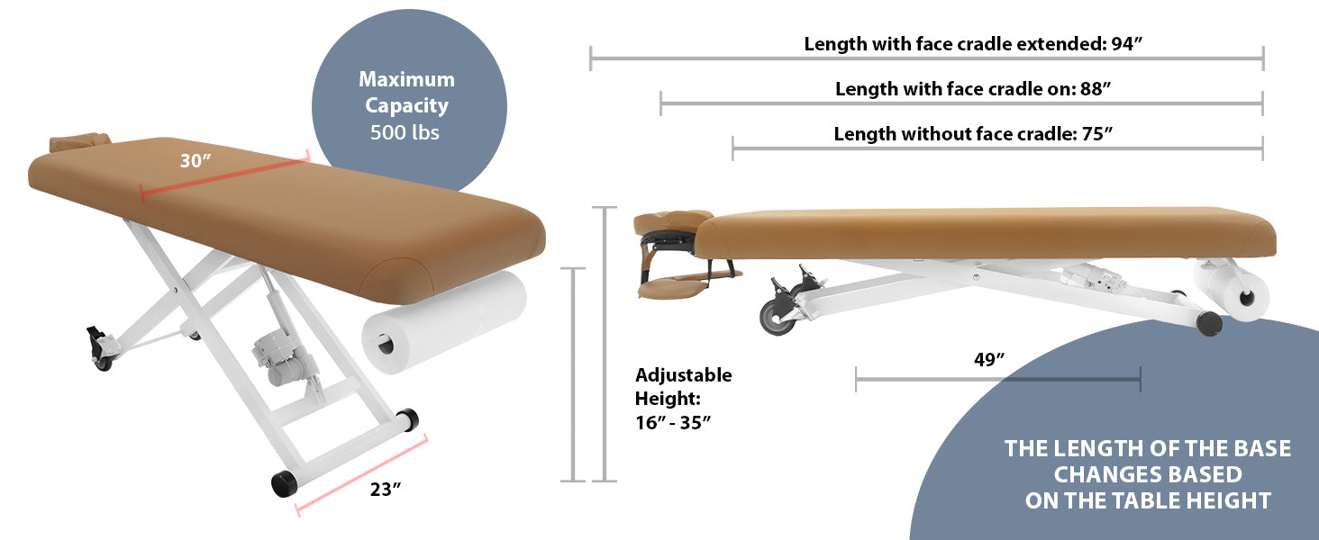 The Stella Treatment Table emerges as the perfect solution for medical spas and doctor's offices, seamlessly combining style with ADA compliance. Beyond its aesthetic appeal, this table boasts electric height adjustment, ensuring a customized and ergonomic experience for both practitioners and clients. Additionally, the inclusion of manual rolling wheels facilitates easy table movement, enhancing the overall functionality of your workspace. The manual removable face cradle and arm rests add another layer of convenience, allowing for versatile configurations tailored to individual preferences. For a comprehensive understanding of these features, we invite you to watch the accompanying video demonstration.