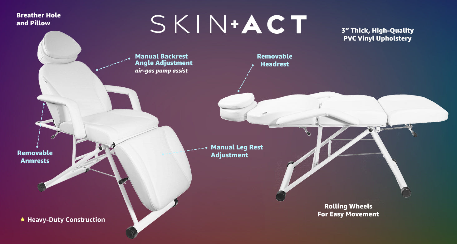 The Amelia Facial Treatment Table/Chair is a simple to use, lightweight option for your beauty/spa/salon treatments. This table only weighs 95 lbs. and has a backrest and leg rest adjustment, making it comfortable for all users. Additionally, the removable armrests and removable headrest make it easy to for any treatment session. The table also features a breather hole for face down treatments.