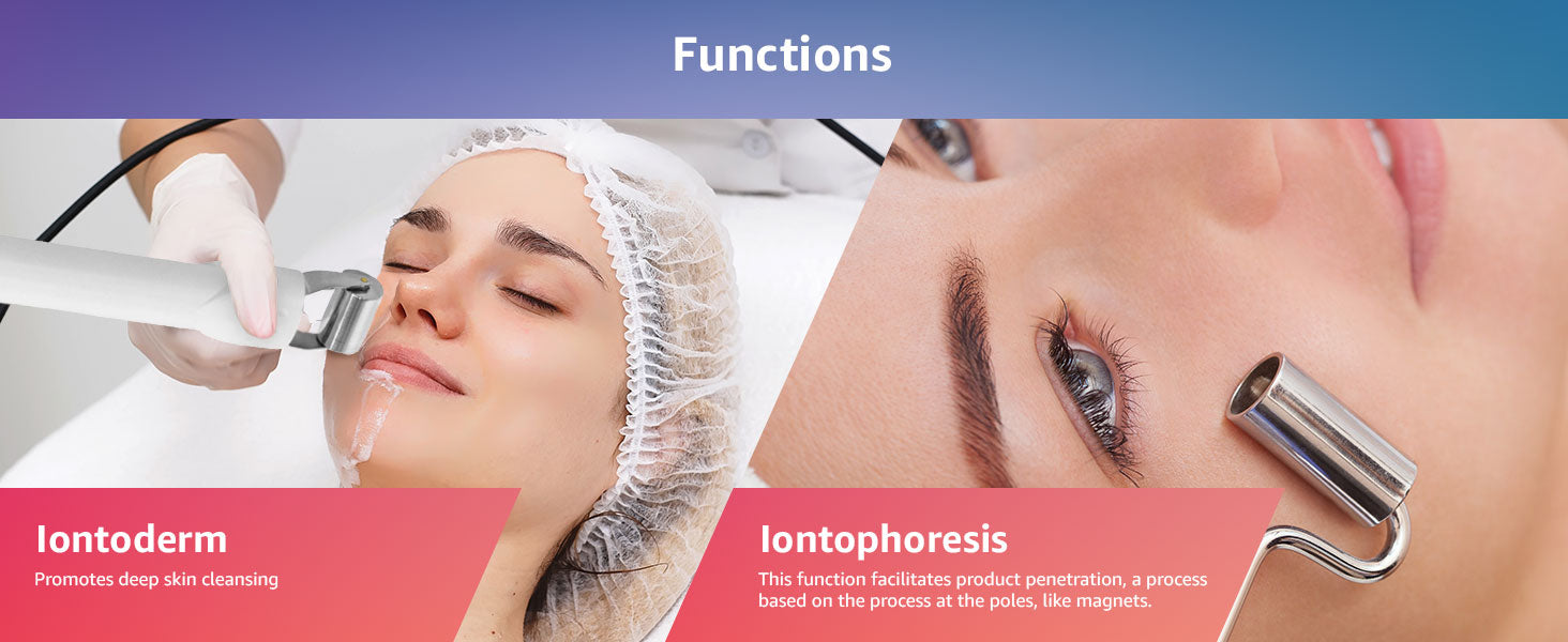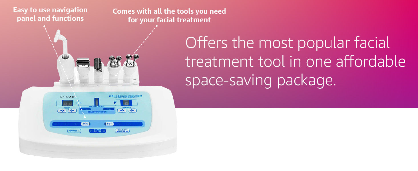 The Deluxe Galvanic High Frequency Table Top Unit offers two of the most popular facial treatment tools in one affordable, space-saving package. Your clients are sure to love the combination of Galvanic and High Frequency. Included with two pairs of Galvanic handles (roller and ball-point) and 4 unique glass electrodes for High Frequency.