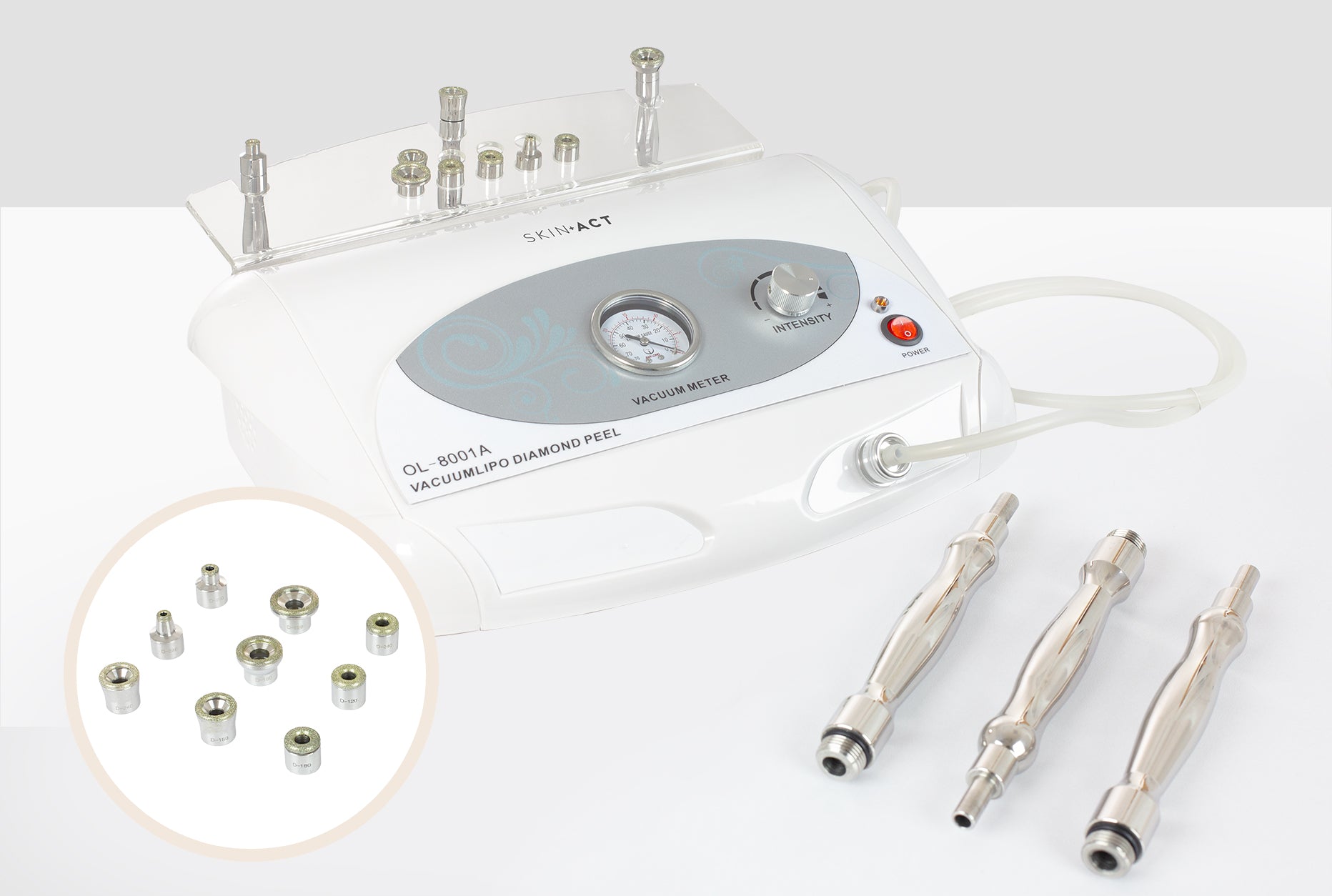 The diamond microdermabrasion (crystal-free) system replaces the micro-crystal flow with a diamond tip wand. Areas closer to the eyes and mouth can be abraded more accurately with diamond abrasion (no risk of stray crystals causing damage or being ingested).