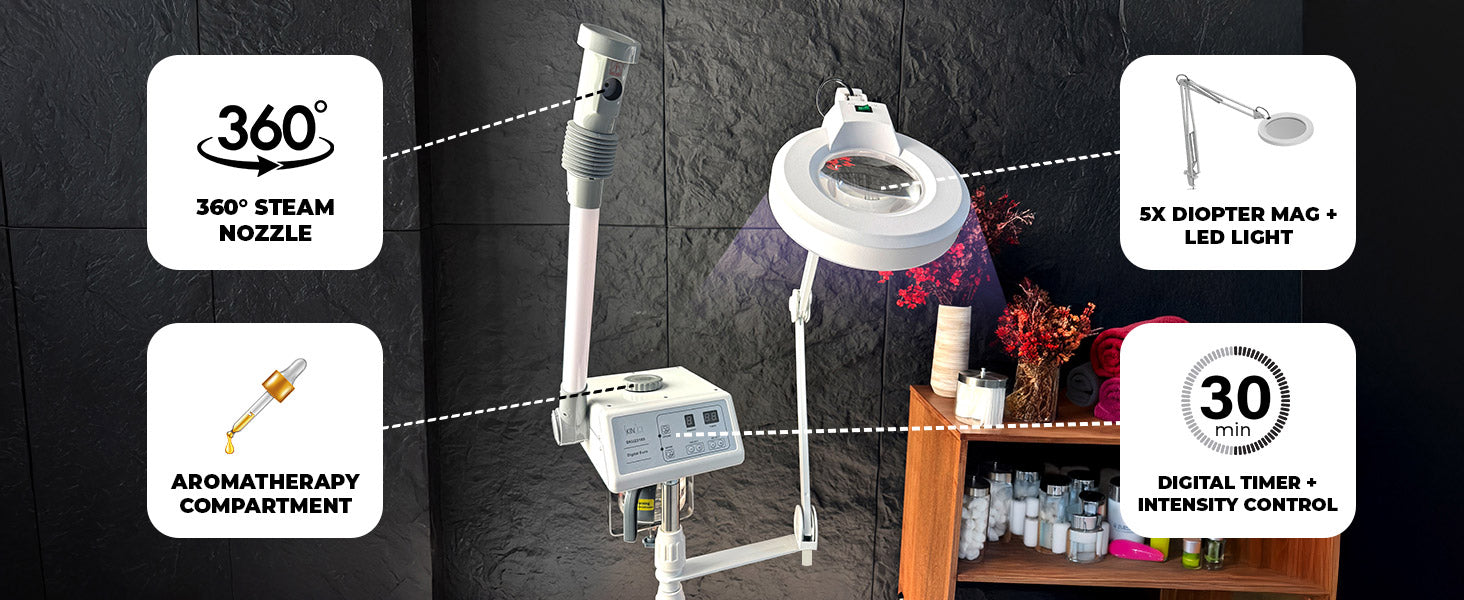Digital Euro Facial Steamer With Aromatherapy + LED Magnifying Lamp