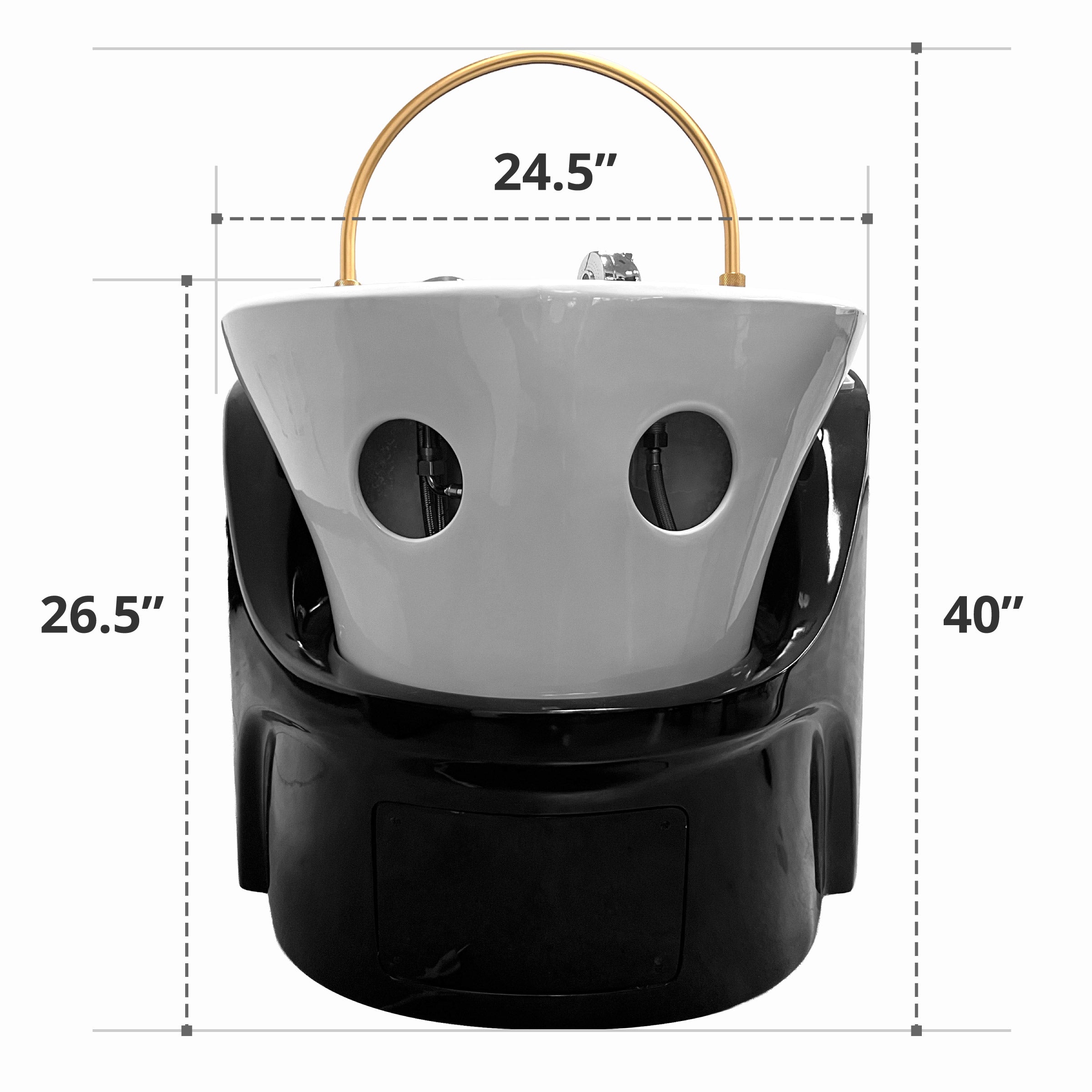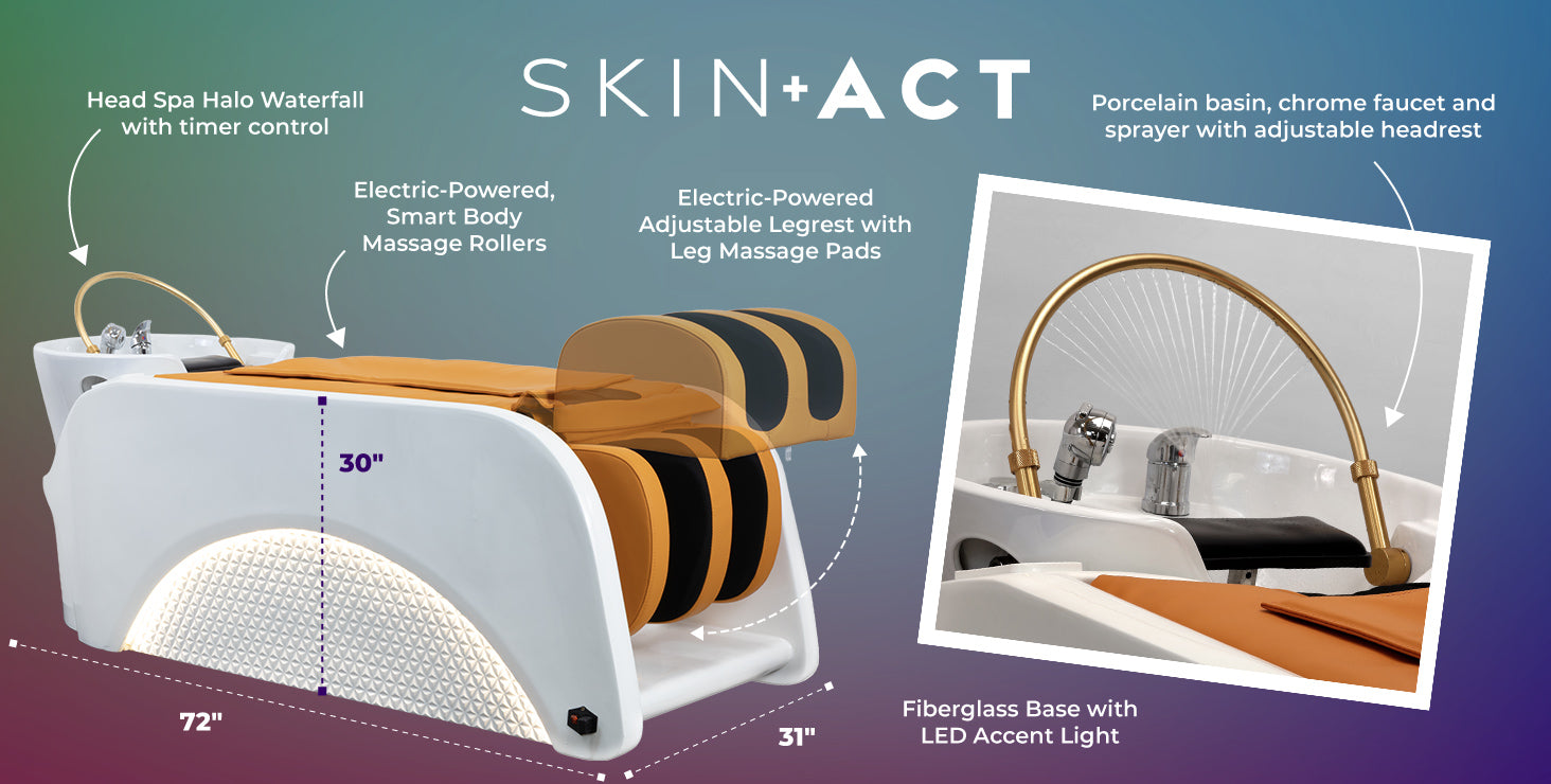 The SkinAct Domerra Head Spa Massage Bed is a luxury shampoo and scalp treatment station designed to transform ordinary washes into full spa experiences. With a built-in massage system, adjustable legrest and headrest, and a sleek armrest-free design, it delivers unmatched comfort while maintaining a clean, modern aesthetic. The integrated water recirculation ring provides a soothing scalp massage effect, while soft LED ambient lighting enhances relaxation and creates a premium atmosphere for clients.