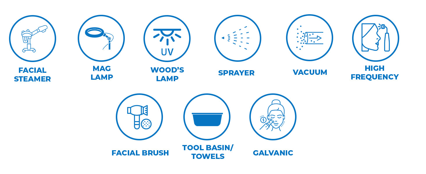 High Frequency - Stimulates circulation of the blood, increases glandular activity, aids in elimination and absorption, increases metabolism, kills germs and bacteria, generates heat inside the tissue, and helps products to go deeper into the skin.