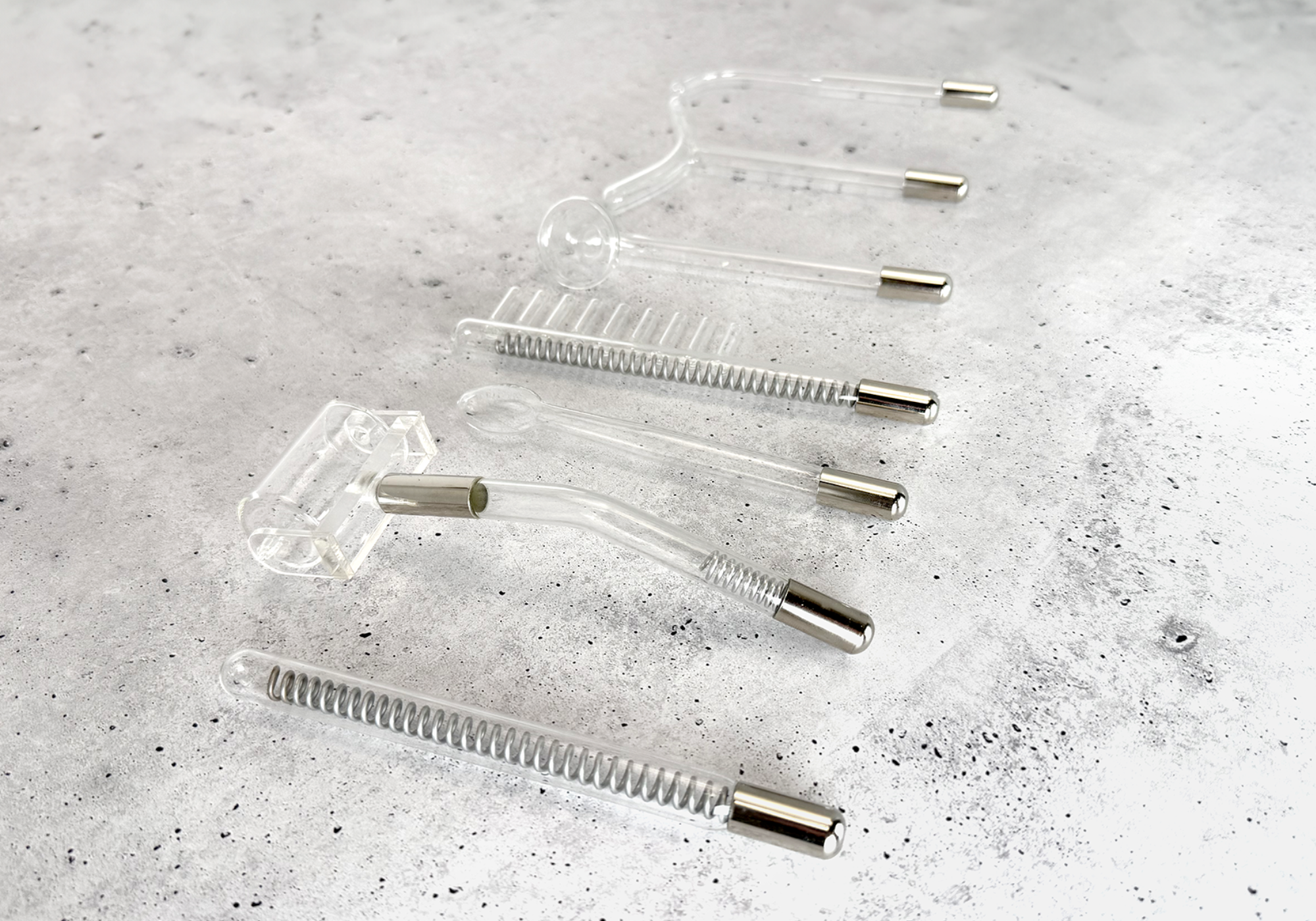 - Attach the Electrode: Choose the appropriate glass electrode for your treatment (mushroom, spoon, rod, etc.) and securely attach it to the device.