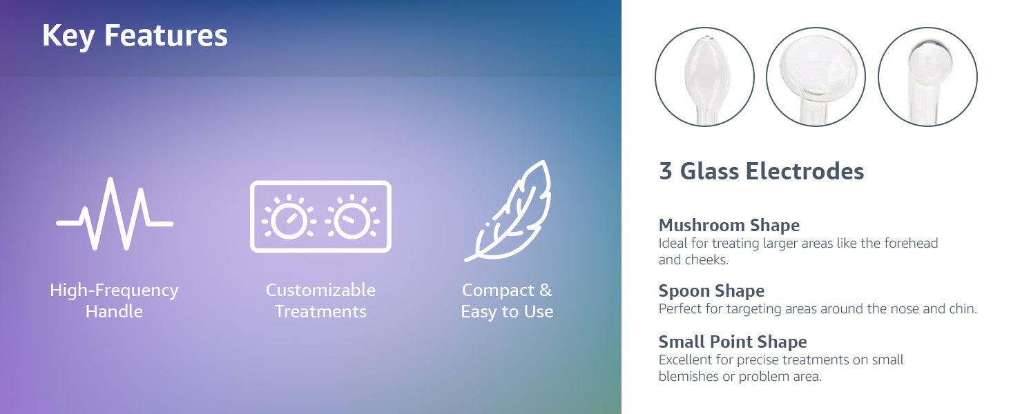 Elevate your skincare routine with the High Frequency Skin Care Unit, a powerful device designed to rejuvenate and clarify your complexion. Featuring a high-frequency handle and three interchangeable glass electrodes (mushroom shape, spoon shape, and small point shape), this versatile tool targets a wide range of skin concerns. Whether you're aiming to reduce breakouts, enhance circulation, or smooth fine lines, this device delivers professional-grade results with ease.