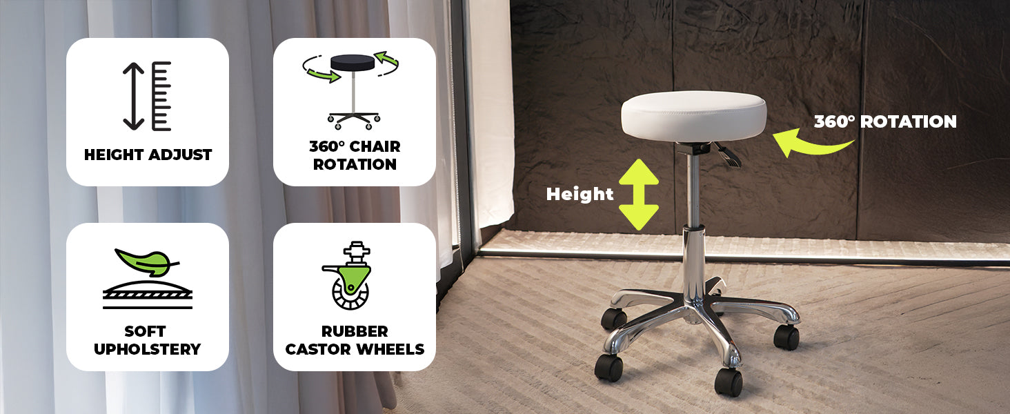 The Hydraulic Stool is an ideal choice for salons, clinics, and medical environments, combining functionality, comfort, and affordability. With a soft cushioned seat upholstered in plush vinyl and a durable metal base, it's both easy to clean and robust. The stool offers adjustable height—from 17″ to 22.5″—and holds up to 400 lb, all within a compact 20.5″ base diameter. Weighing only 9 lb, it’s highly portable and convenient for busy workspaces. Backed by a 1-year warranty, this versatile stool brings reliable performance and professional polish to any treatment room.