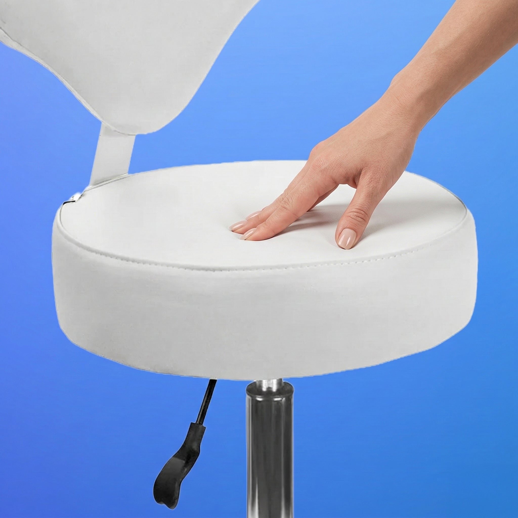 Easily adjust the seat height to achieve the ideal working position for comfort and efficiency. The smooth adjustment mechanism allows quick, precise changes, helping reduce strain and maintain proper posture during long treatments or tasks in professional spa, salon, or medical environments.