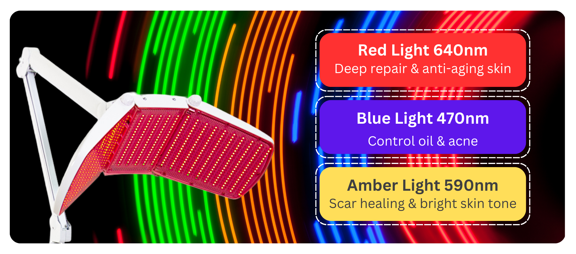 Specific wavelengths of pulsating light from the visible spectrum have beneficial effects on the skin cells.