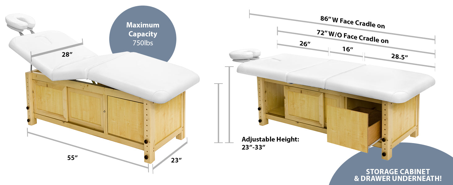 The Lux Spa Treatment Bed has a clean, classic appearance popular in many of our famous spa locations. Our plush cushioning system and soft upholstery is some of the most comfortable padding ever built. Our design incorporates high-quality wood and unique construction that makes it one of the strongest, most durable tables of its kind in the spa massage industry.