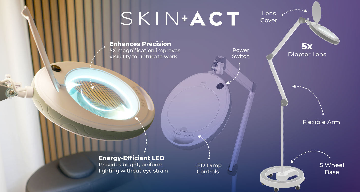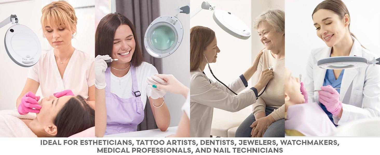 The Moda LED Magnifying Lamp combines sleek design with powerful performance, featuring a 5X glass lens (5.5" diameter) and energy-efficient 9W LED lighting that delivers 800 lumens without overheating. Its touch control brightness system offers smooth, adjustable lighting, perfect for detailed work. ETL certified for international safety compliance, this floor-standing lamp glides effortlessly across any surface thanks to its six-wheel, open-circle rolling base. With an adjustable neck for flexible positioning and a compact footprint (79 x 41 x 110 cm), the Moda lamp brings clarity, mobility, and reliability to any professional workspace.
