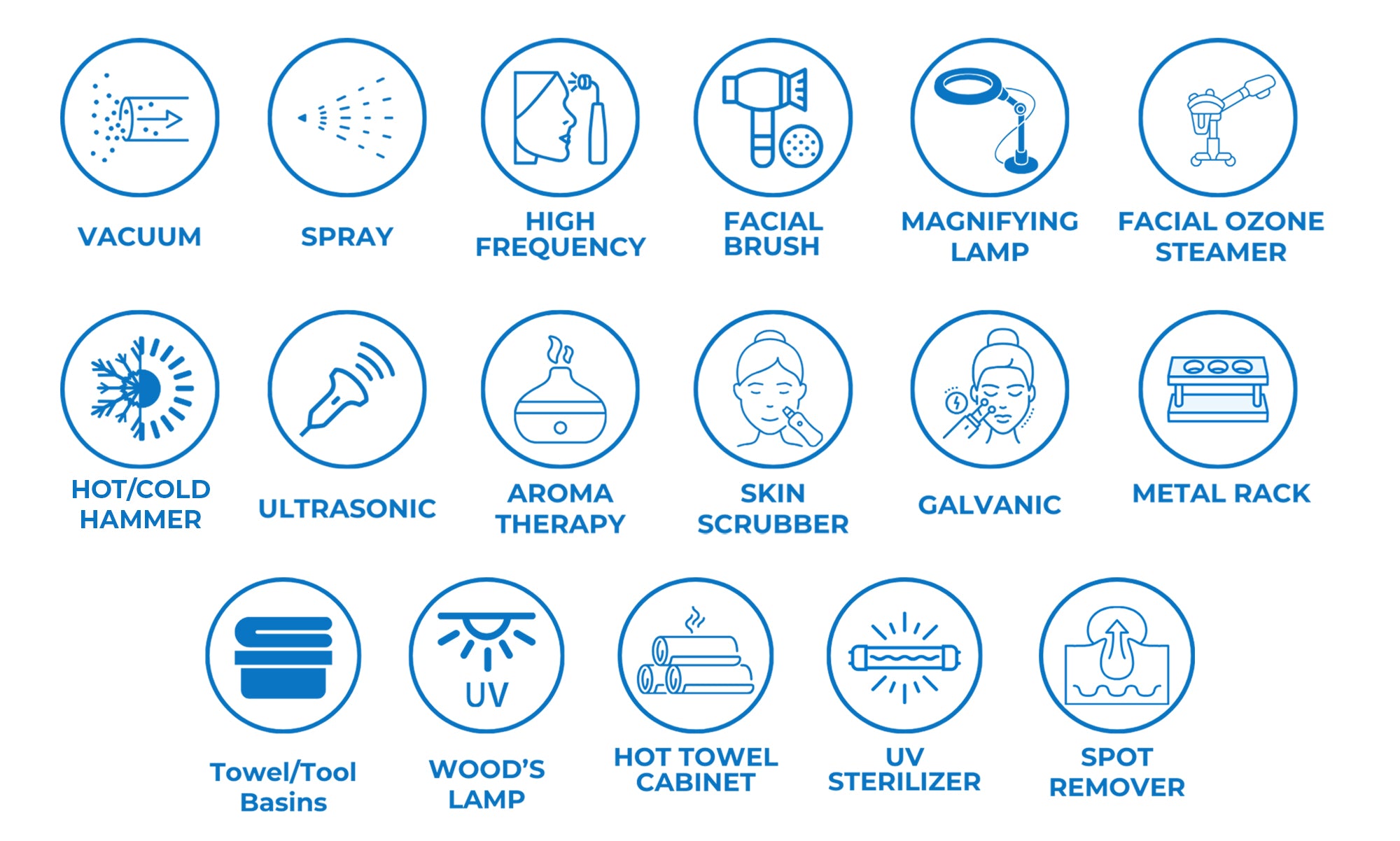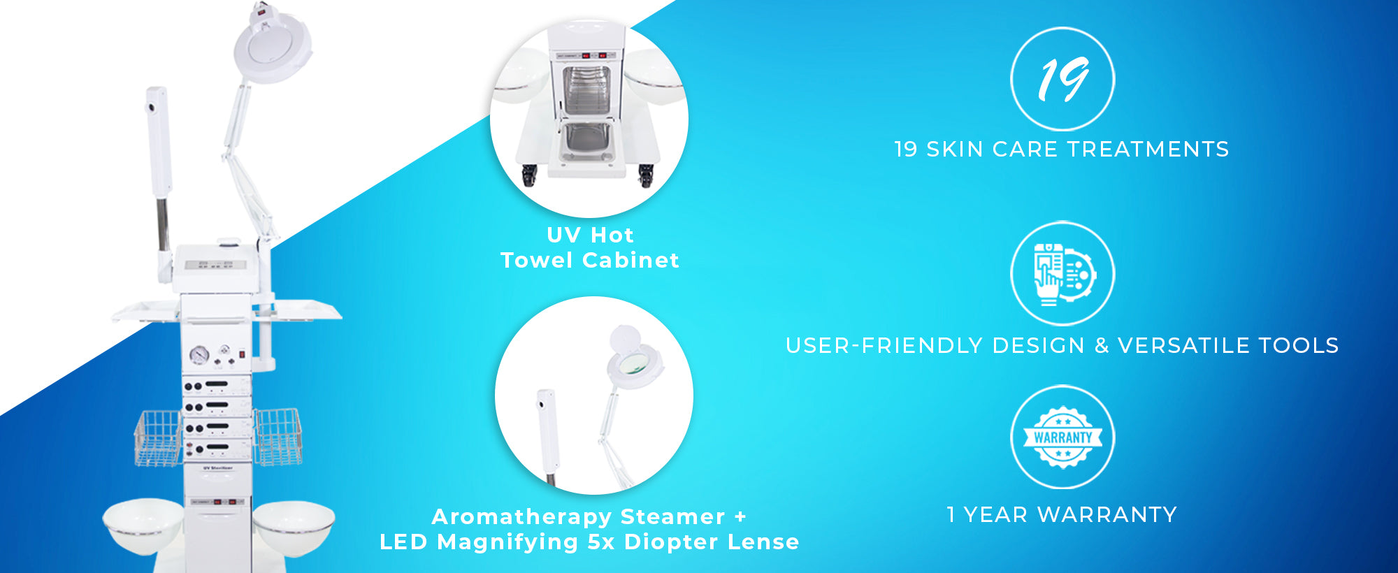 Benefits: The ability to view the skin under UV rays to effectively treat the skin. - Hot Towel Cabi - Great for warming towels for your clients during facials.