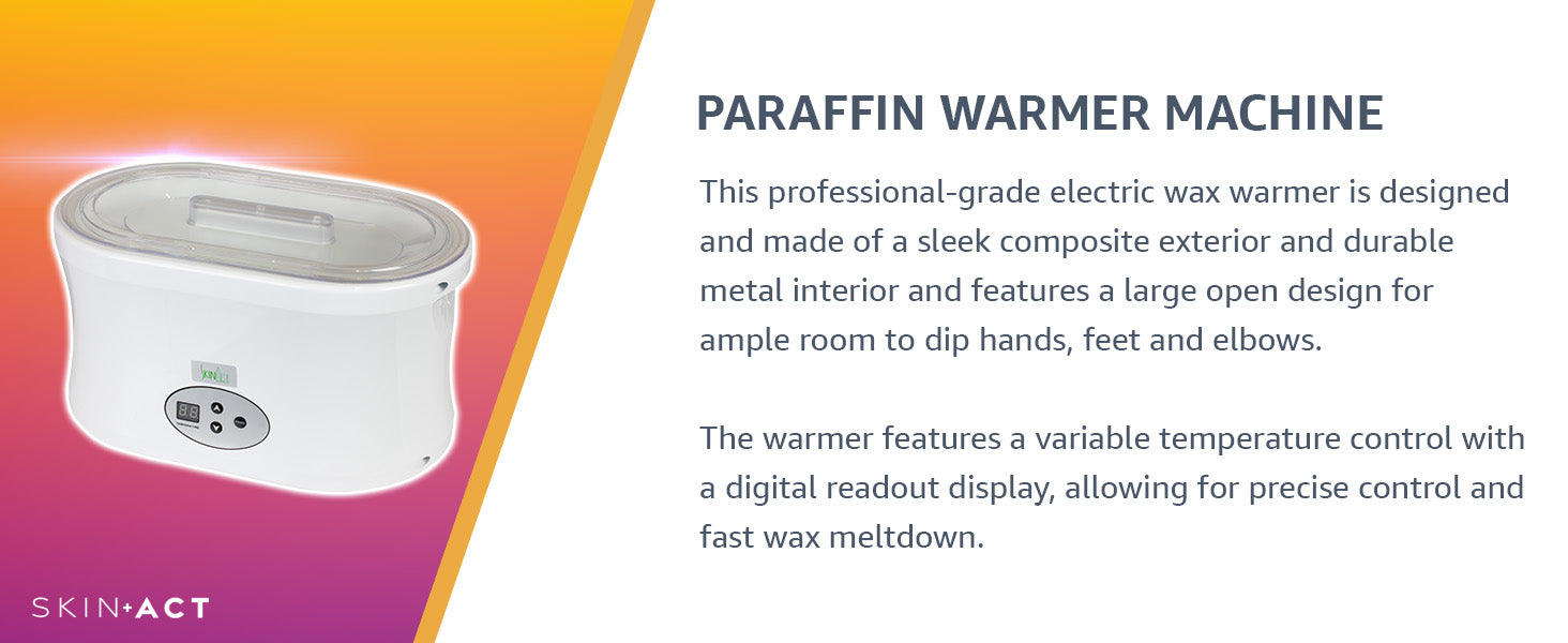 This professional-grade electric wax warmer is designed and made of a sleek composite exterior and durable metal interior and features a large open design for ample room to dip hands, feet and elbows. The warmer features a variable temperature control with a digital readout display, allowing for precise control and fast wax meltdown.