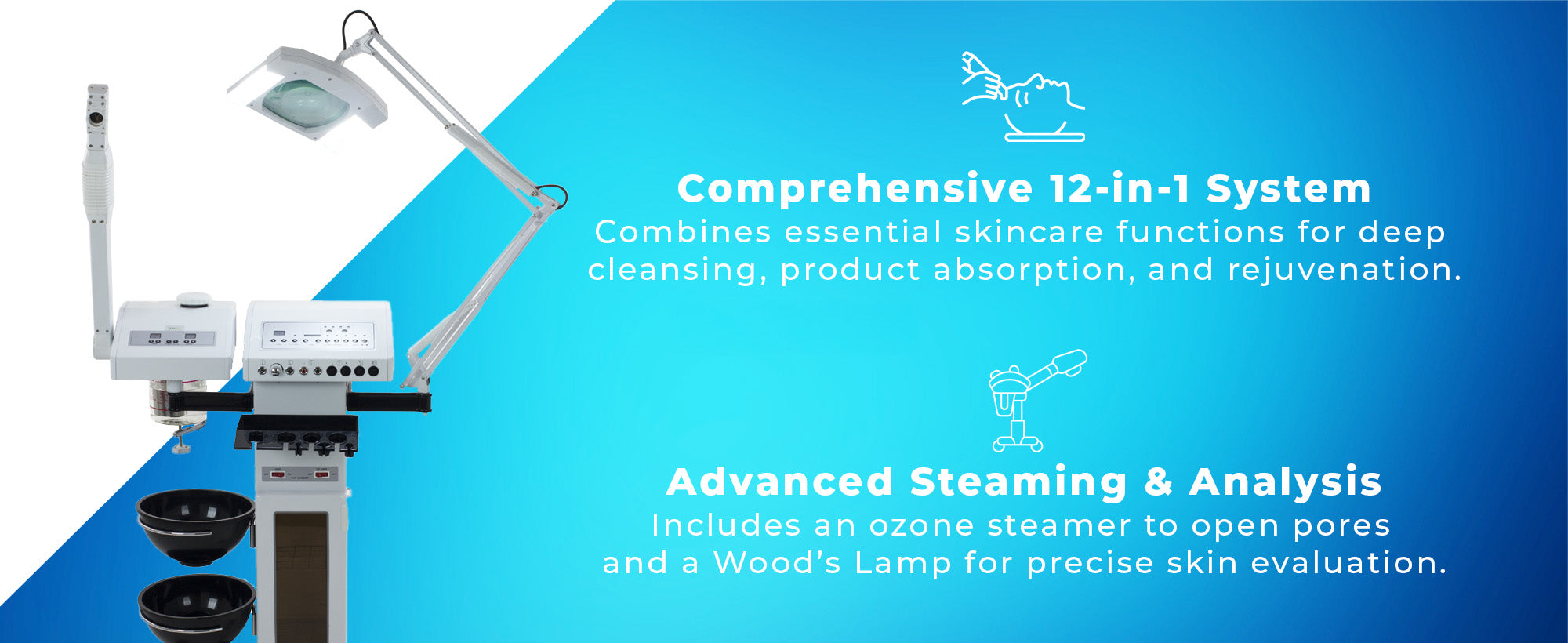 Benefits: The ability to view the skin under UV rays to effectively treat the skin.