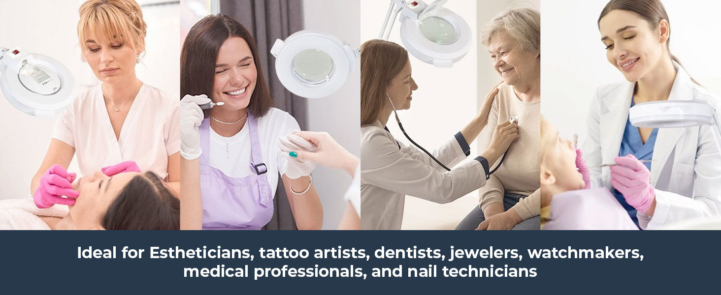 The Skinact Magnifying Lamp with Wheels provides clear magnification to enlarge imperfections of the skin. The spring adjustment and height adjustment mechanisms will allow you to place the magnifying lamp at the desired position. The soft cool light bulbs provide the operator with proper lighting while keeping the client feeling comfortable. The swivel caster wheels will allow for easy movement. New head design fits modern Spa decor.
