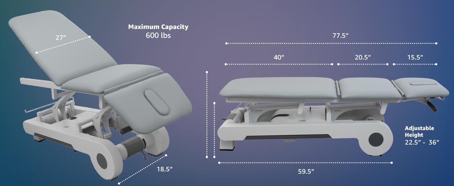 The sturdy Rover Medical Treatment Table is highly resilient and user-friendly. It comes with foot controls on all sides for adjusting the table height. Supported by a wide and heavy base, it has a weight capacity of 600 lbs. The table can transition smoothly from a flat position to an upright position with its adjustable backrest and leg rest. Moreover, it is designed with lockable wheels on the base for convenient table movement. To witness all its functionalities, please refer to the video.