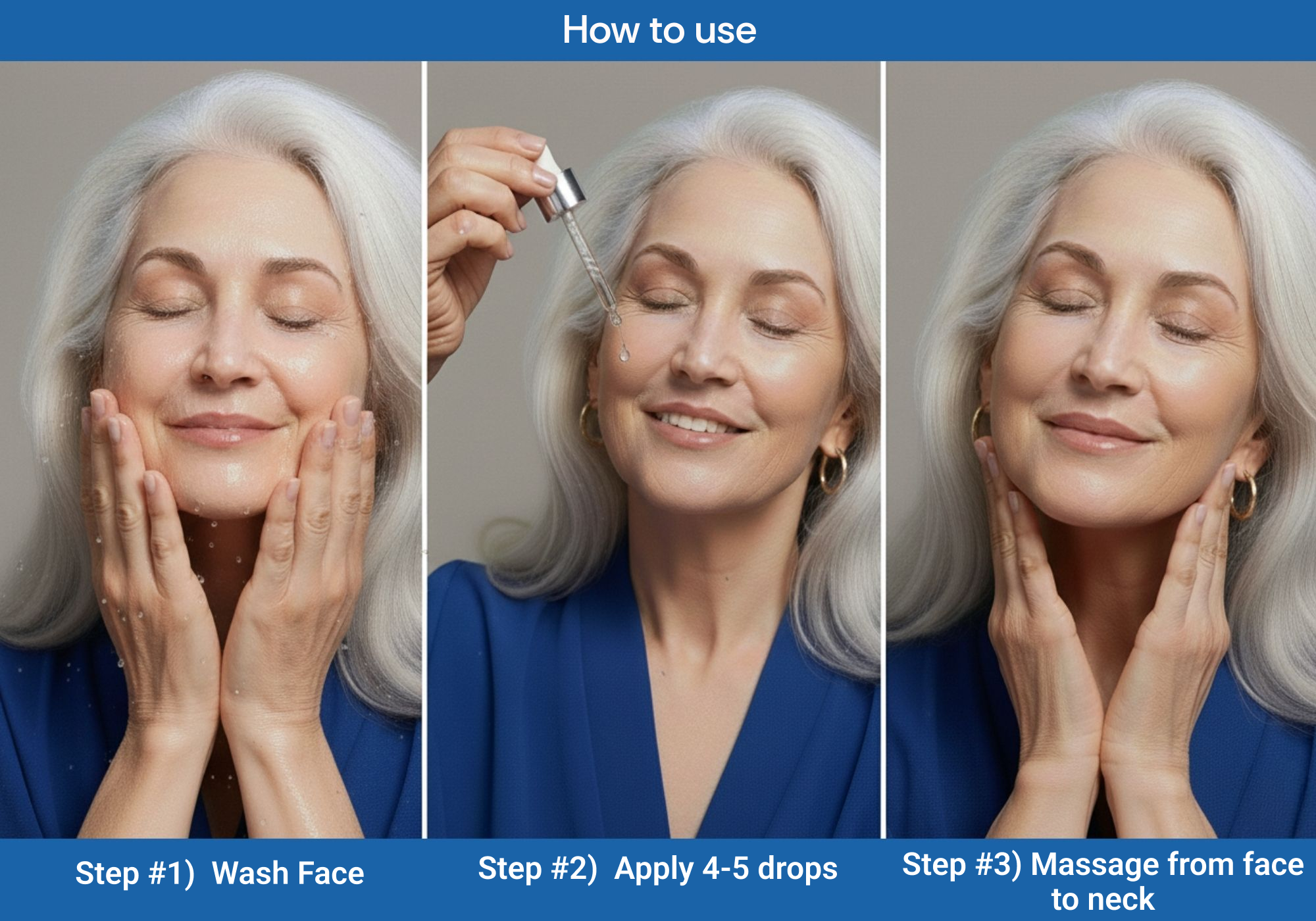 - Apply 4-5 drops of serum to your face and neck