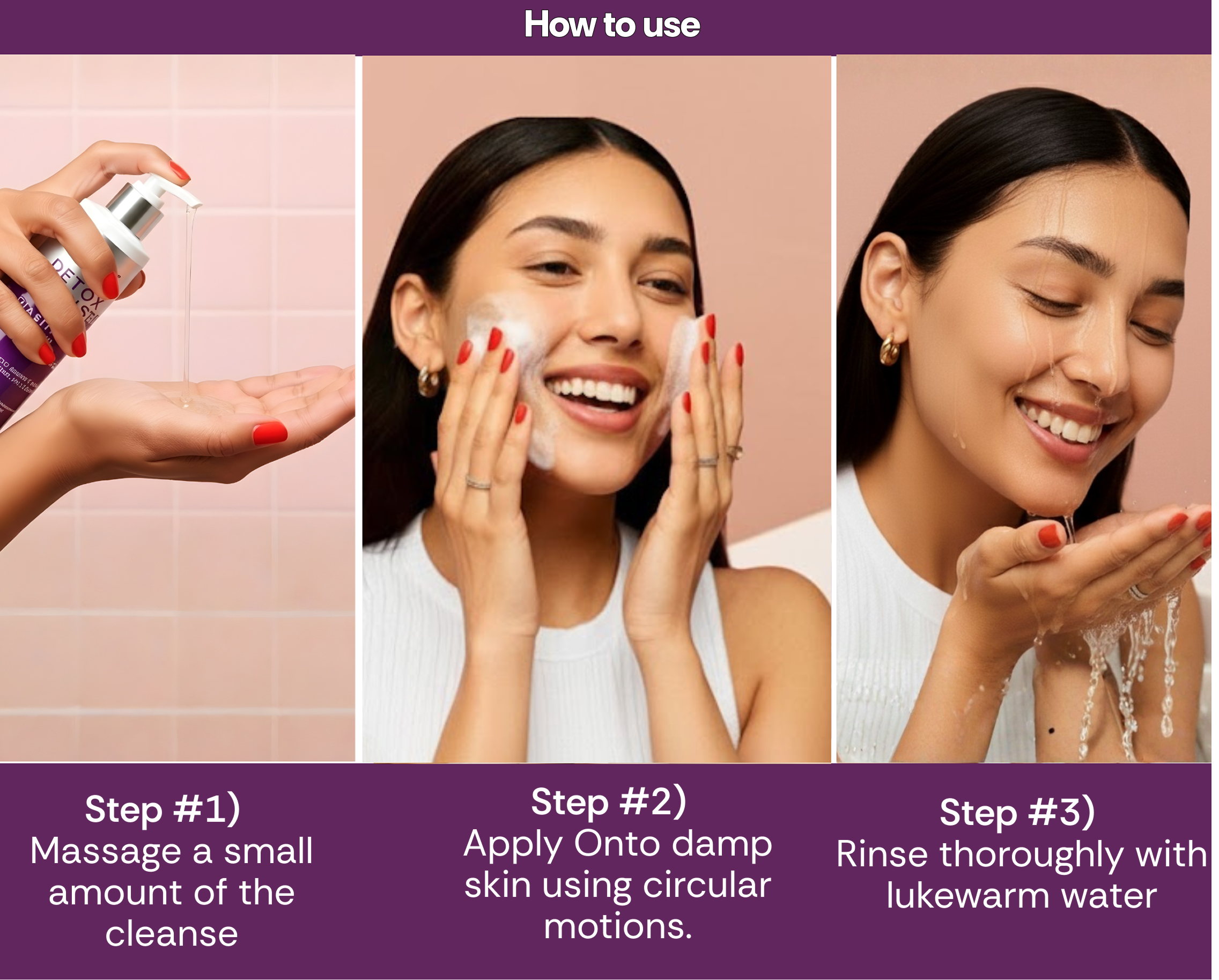 Aloe Vera, L-Arginine, and botanical extracts soothe, hydrate, and balance the skin barrier — making this daily detox cleanser gentle enough for all skin types, even sensitive or acne-prone.