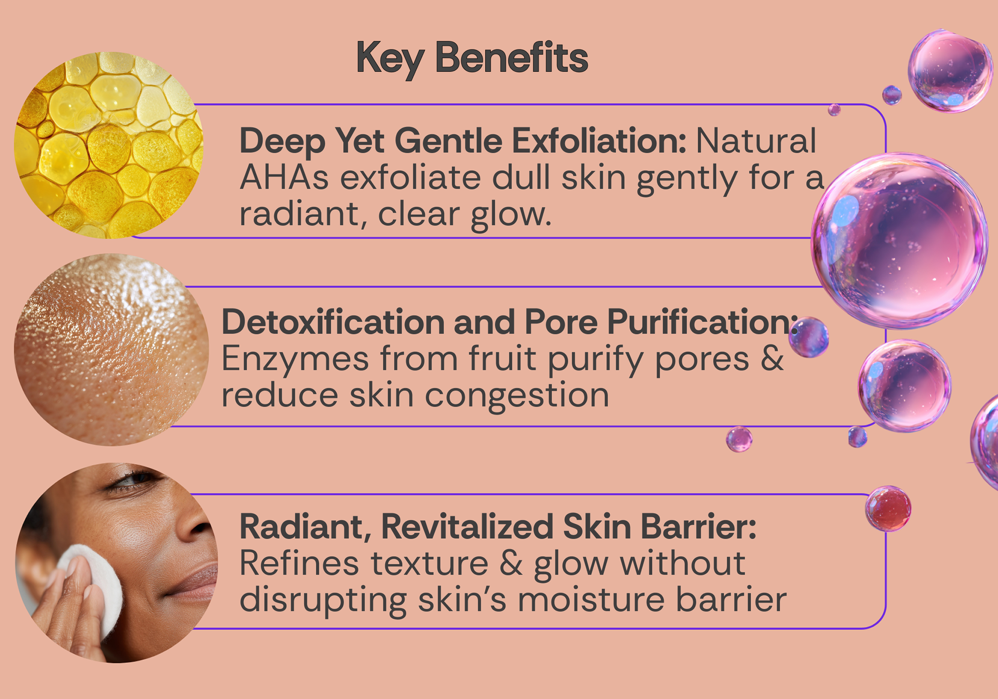 Fruit enzymes (papain, bromelain) break down excess oil and debris inside pores, helping reduce breakouts and congestion for clearer-looking skin. - Radiant, Revitalized Skin Barrier: