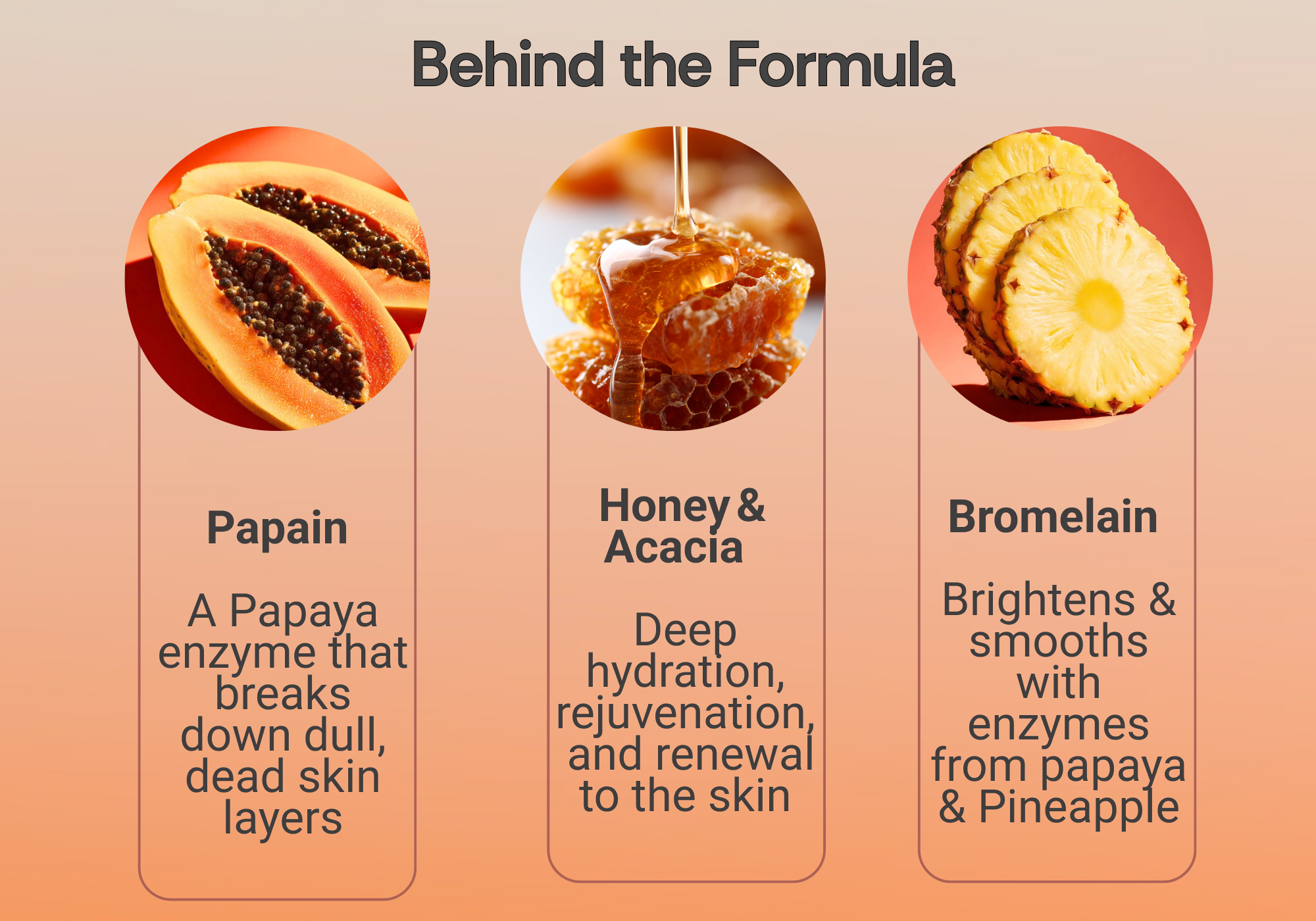 - Papain (from Papaya) – A powerful natural enzyme that gently removes dull, dead skin layers for a brighter, smoother texture.