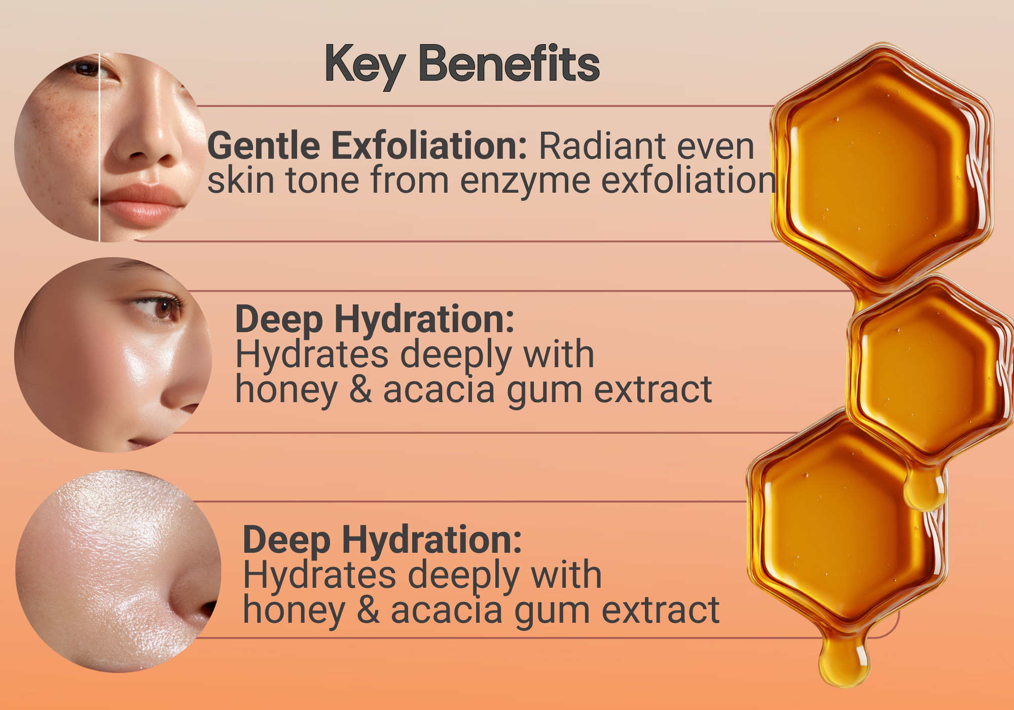 - Intense Hydration for All Skin Types – Infused with Honey and Acacia Senegal Gum Extract, this hydrating treatment helps lock in moisture and restore skin's natural glow