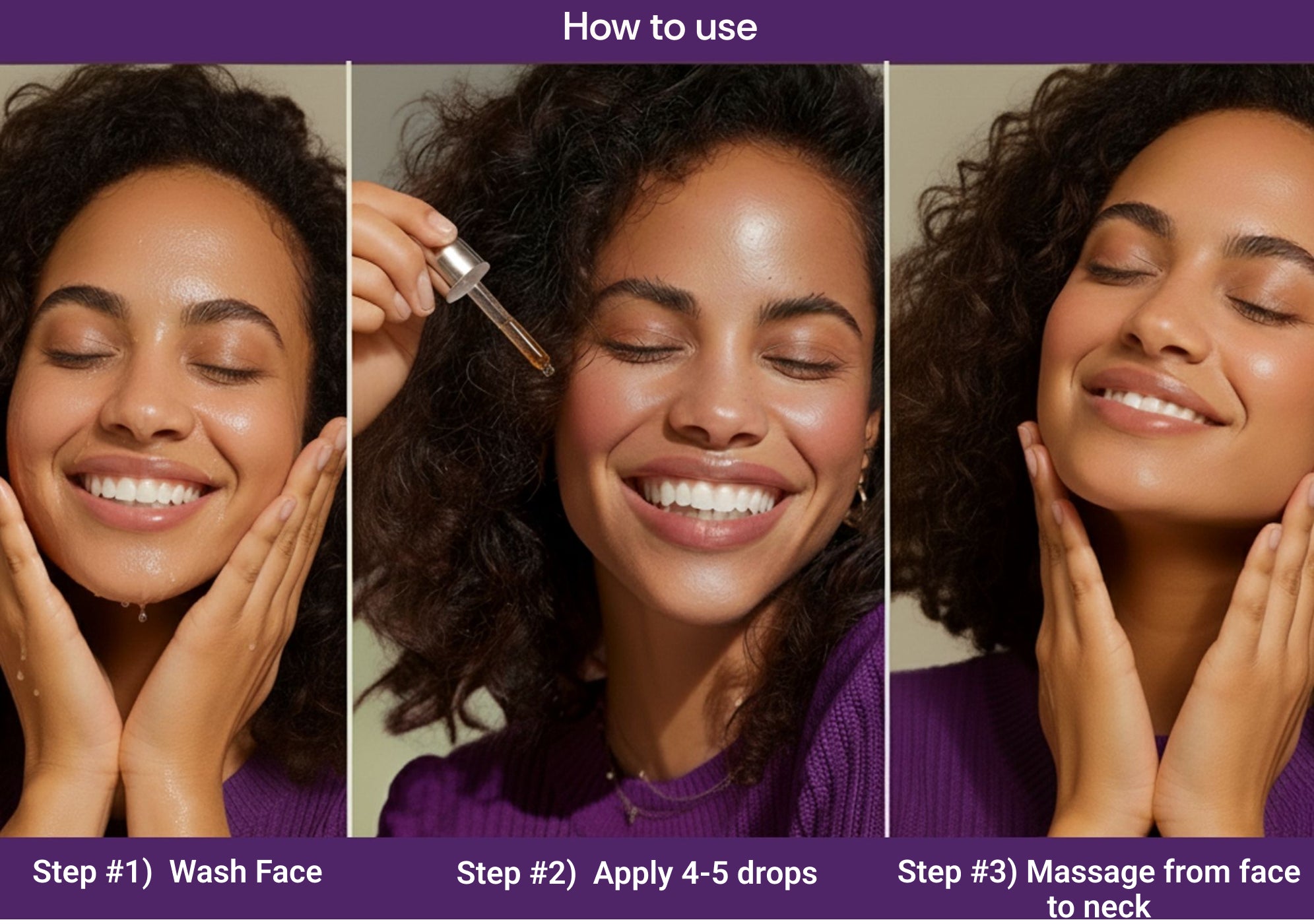 - Apply 4 to 5 drops of serum to the face and neck