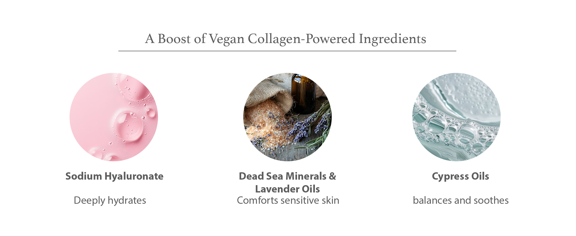 + Vegan collagen hydrates and boosts elasticity.