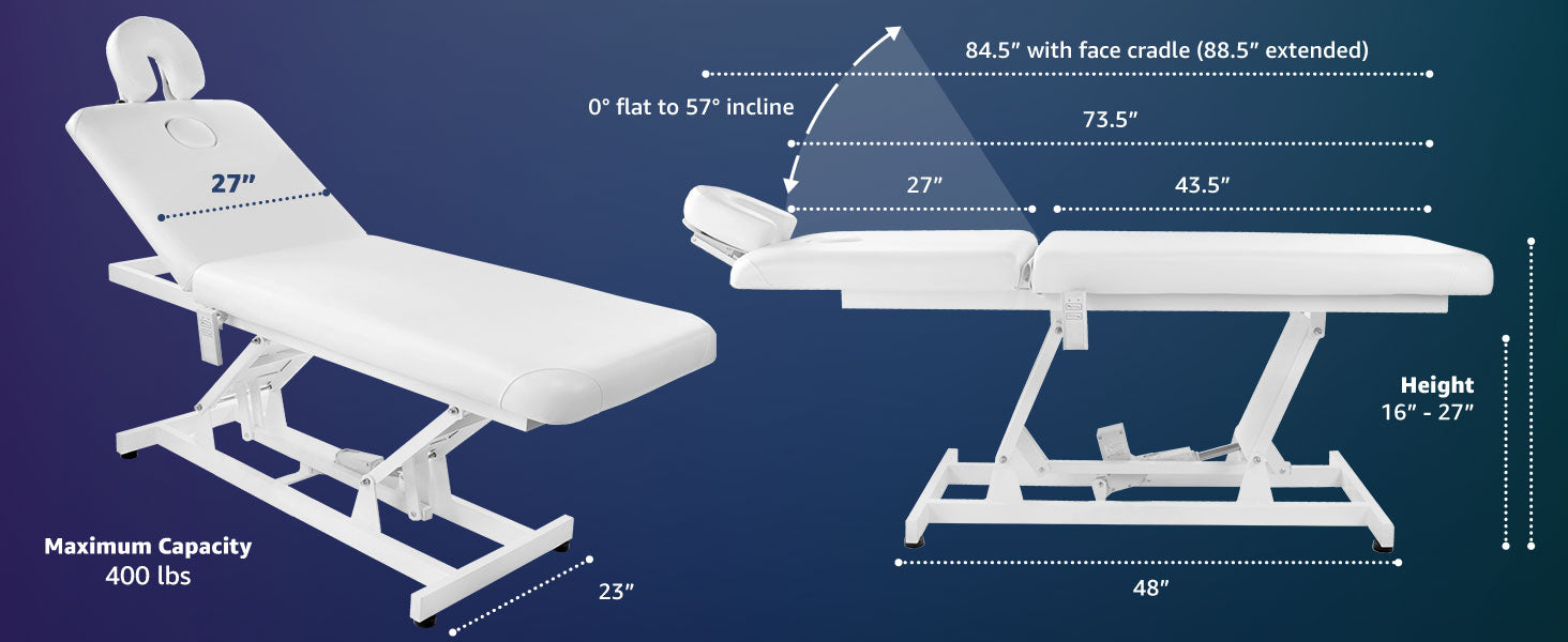 The Soho Facial Treatment Table stands out as an excellent choice for medical spas and doctor's offices, offering a blend of advanced features. Experience the convenience of electric backrest angle adjustment, electric height adjustment, and a manual removable face cradle with two attachable cushions for enhanced client comfort. This table provides a versatile and customizable experience, ensuring it meets the diverse needs of your clientele. For a closer look at its capabilities, please refer to the accompanying video demonstration.