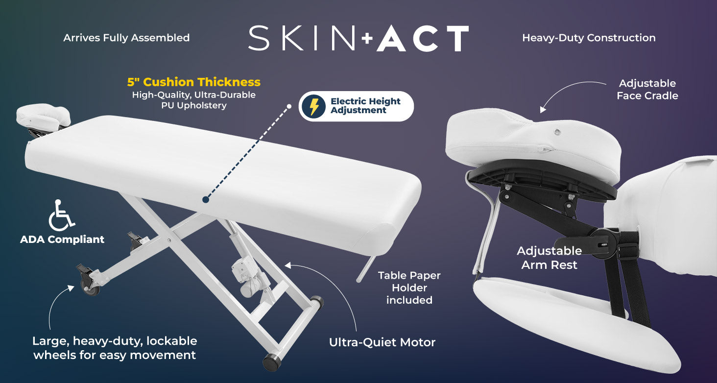 The Stella Treatment Table emerges as the perfect solution for medical spas and doctor's offices, seamlessly combining style with ADA compliance. Beyond its aesthetic appeal, this table boasts electric height adjustment, ensuring a customized and ergonomic experience for both practitioners and clients. Additionally, the inclusion of manual rolling wheels facilitates easy table movement, enhancing the overall functionality of your workspace. The manual removable face cradle and arm rests add another layer of convenience, allowing for versatile configurations tailored to individual preferences. For a comprehensive understanding of these features, we invite you to watch the accompanying video demonstration.