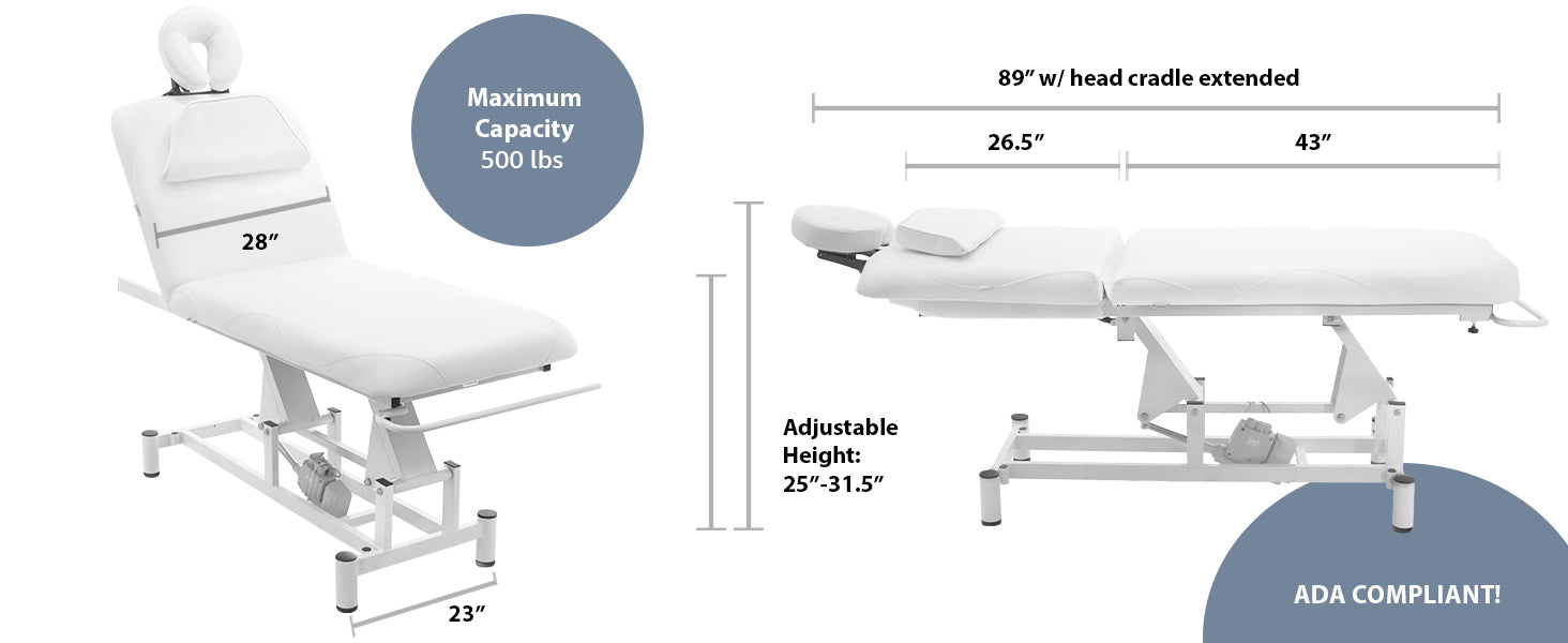The Turin Treatment Table is perfect for any medical spa or doctor’s office. Not only is it stylish but it’s also ADA compliant. With an incredible range of possible configurations, you’ll find that this table will suit all your needs. Please watch the video to see how the different components work.