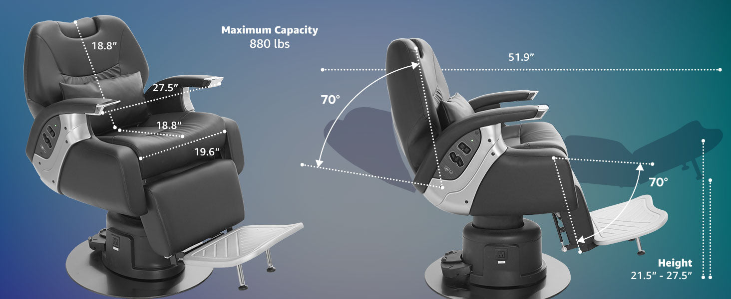 With fully electric adjustability, this barber chair allows effortless reclining of the backrest and footrest up to 140 degrees, ensuring ultimate relaxation. Its advanced memory function saves preferred positions, while the one-touch reset feature instantly restores the chair to its original position. Unlike traditional hydraulic systems, the Vanguard features an innovative electric pump for smooth and precise height adjustments.