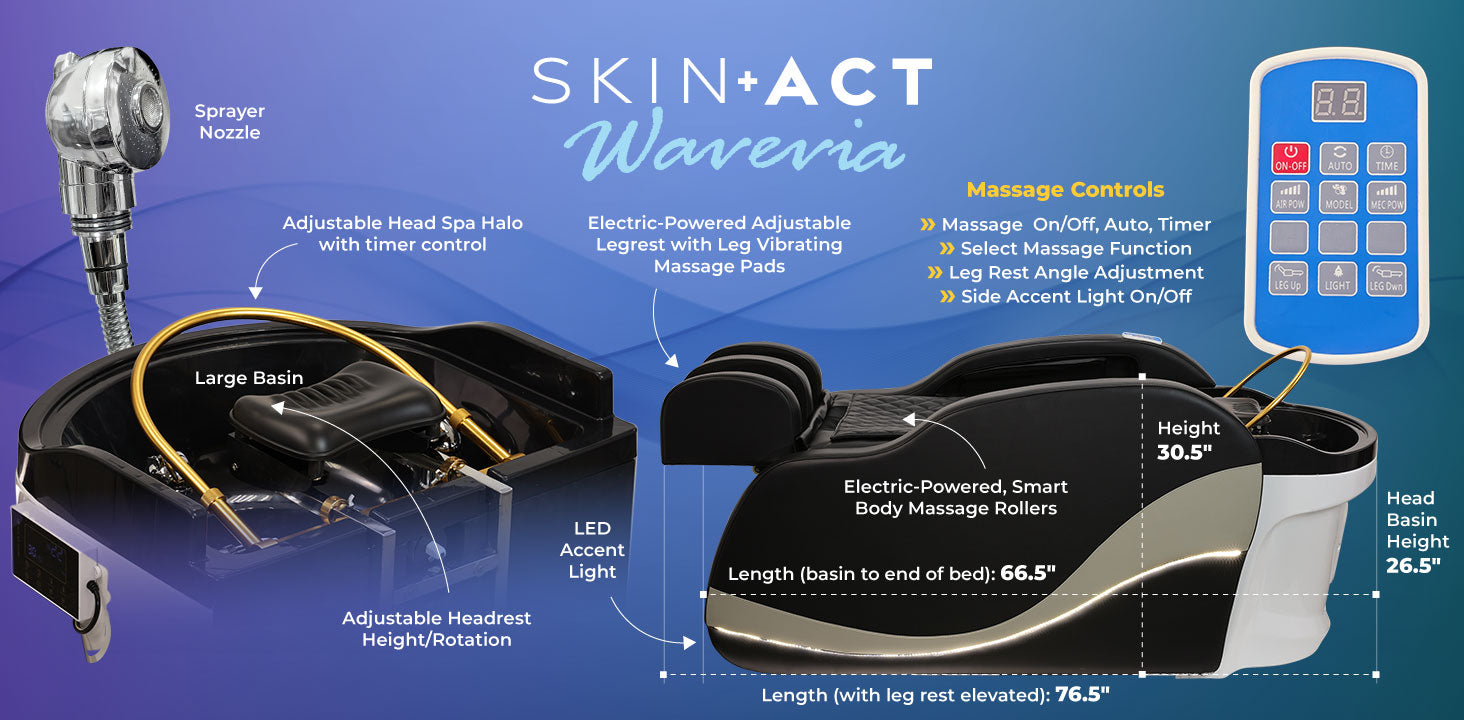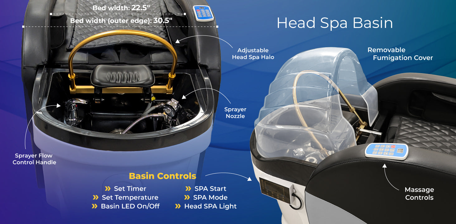 The eco-friendly water recirculation ring promotes both cleanliness and sustainability, while soft LED accents create a sleek, modern ambiance in your treatment space. For enhanced versatility, this unit can be paired with a dedicated hair steamer to expand your service offerings. Please note: shower head placement and plumbing configurations may vary by production batch; images serve as a general guide only.