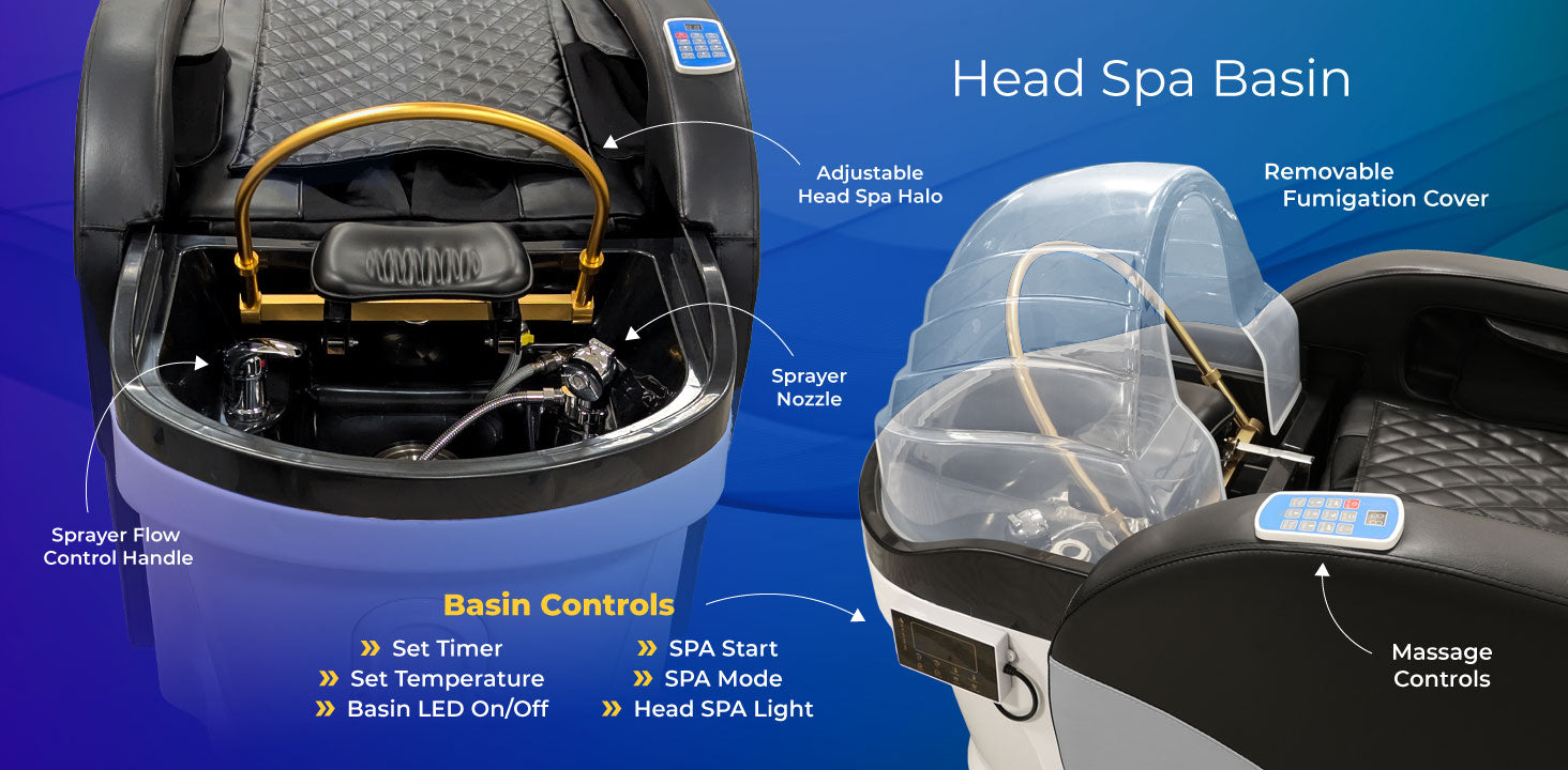 The eco-friendly water recirculation ring promotes both cleanliness and sustainability, while soft LED accents create a sleek, modern ambiance in your treatment space. For enhanced versatility, this unit can be paired with a dedicated hair steamer to expand your service offerings. Please note: shower head placement and plumbing configurations may vary by production batch; images serve as a general guide only.